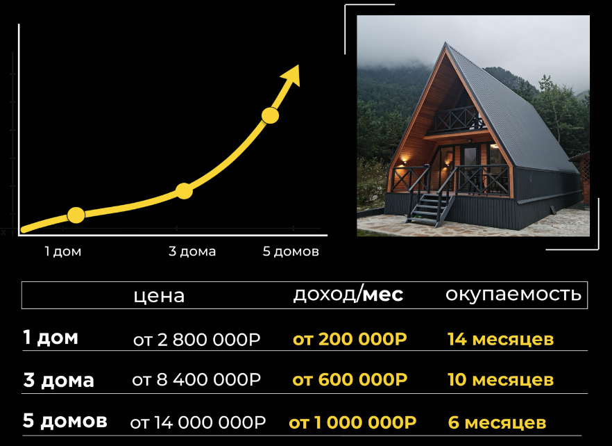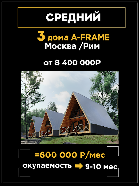 A-frame и Барнхаусы с окупаемостью от 6 месяцев.