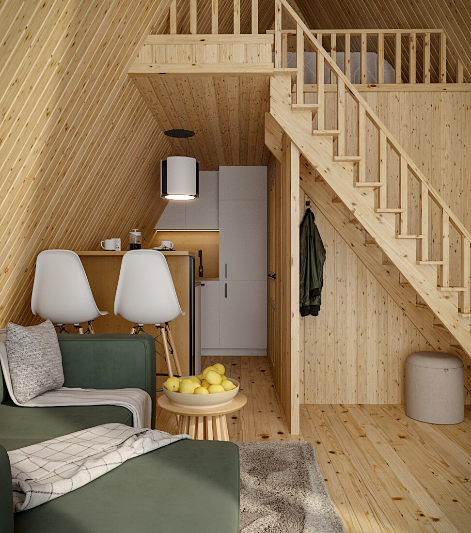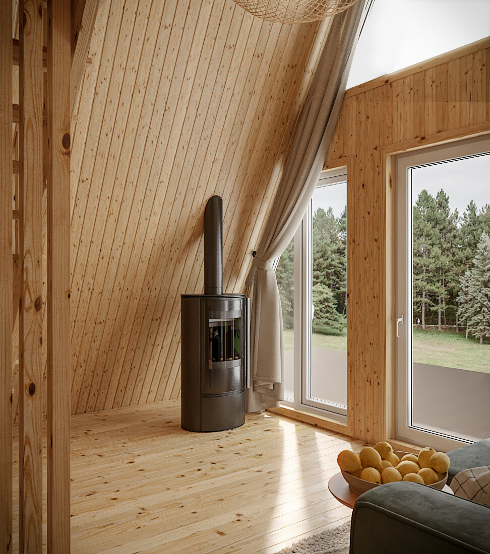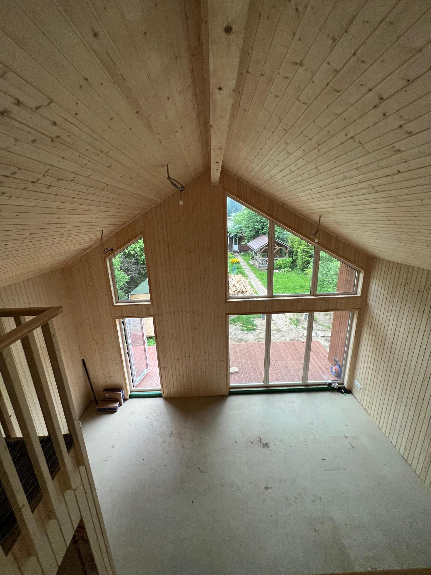 -.Внутренняя отделка: Вагонка евро или вагонка штиль сорта АВ через контррейку. В углах устанавливается деревянный плинтус.