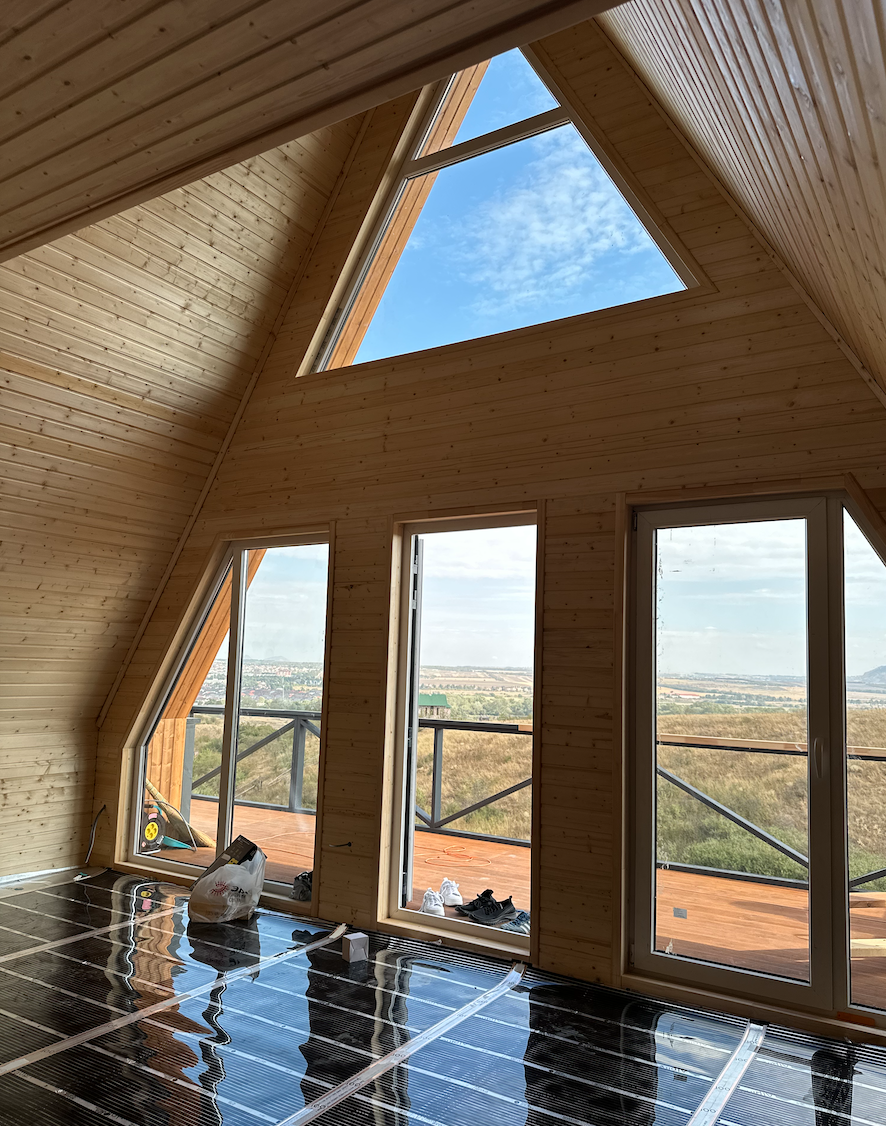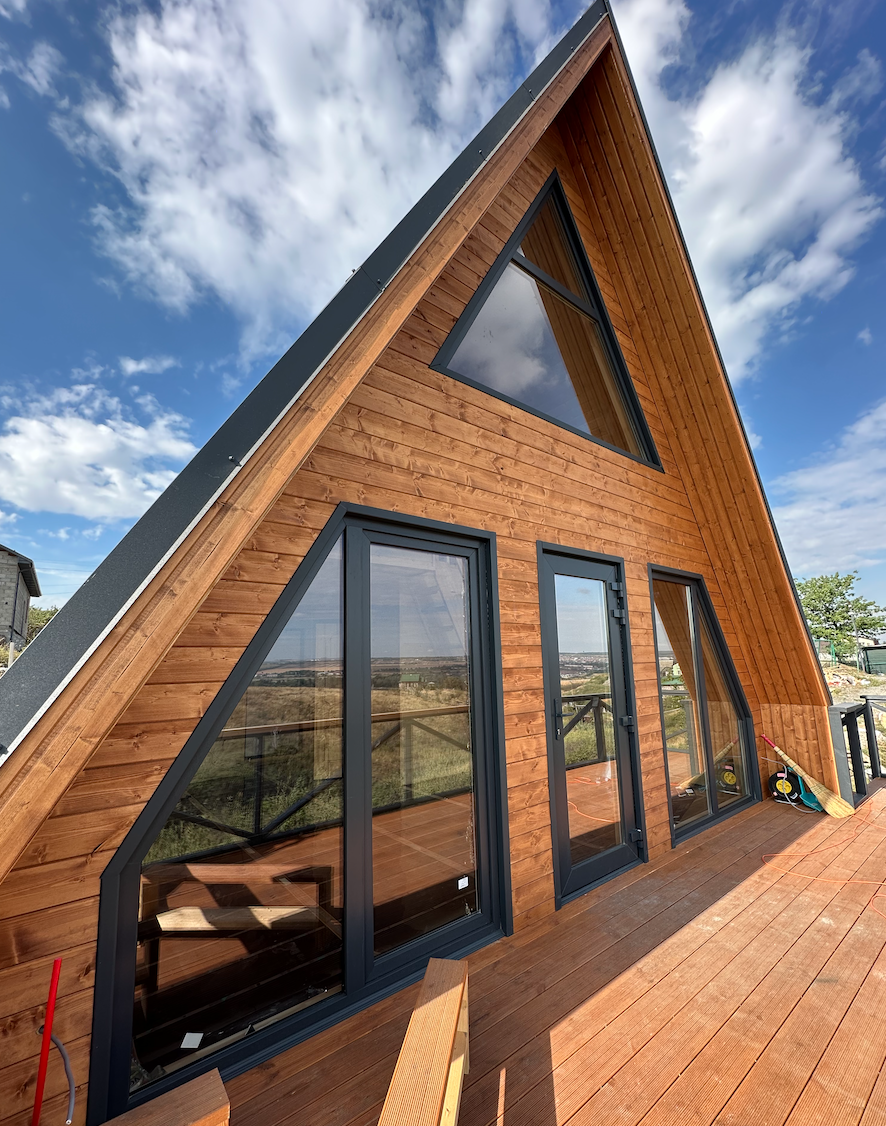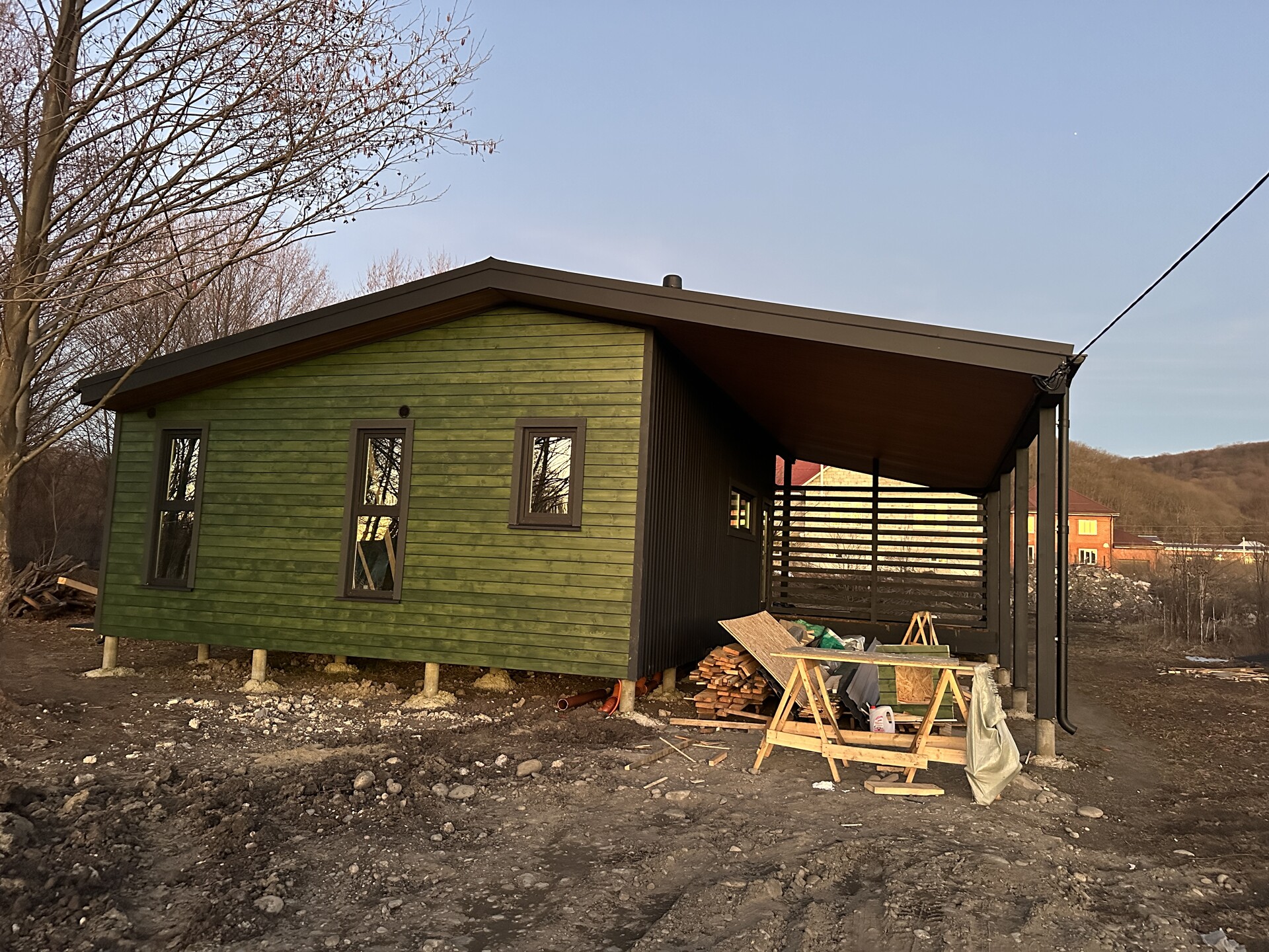 -Окна: ПВХ Elex, однокамерные, профиль 60, ламинация с одной стороны.Окна при установке утапливаются в зону каркаса и утепления.