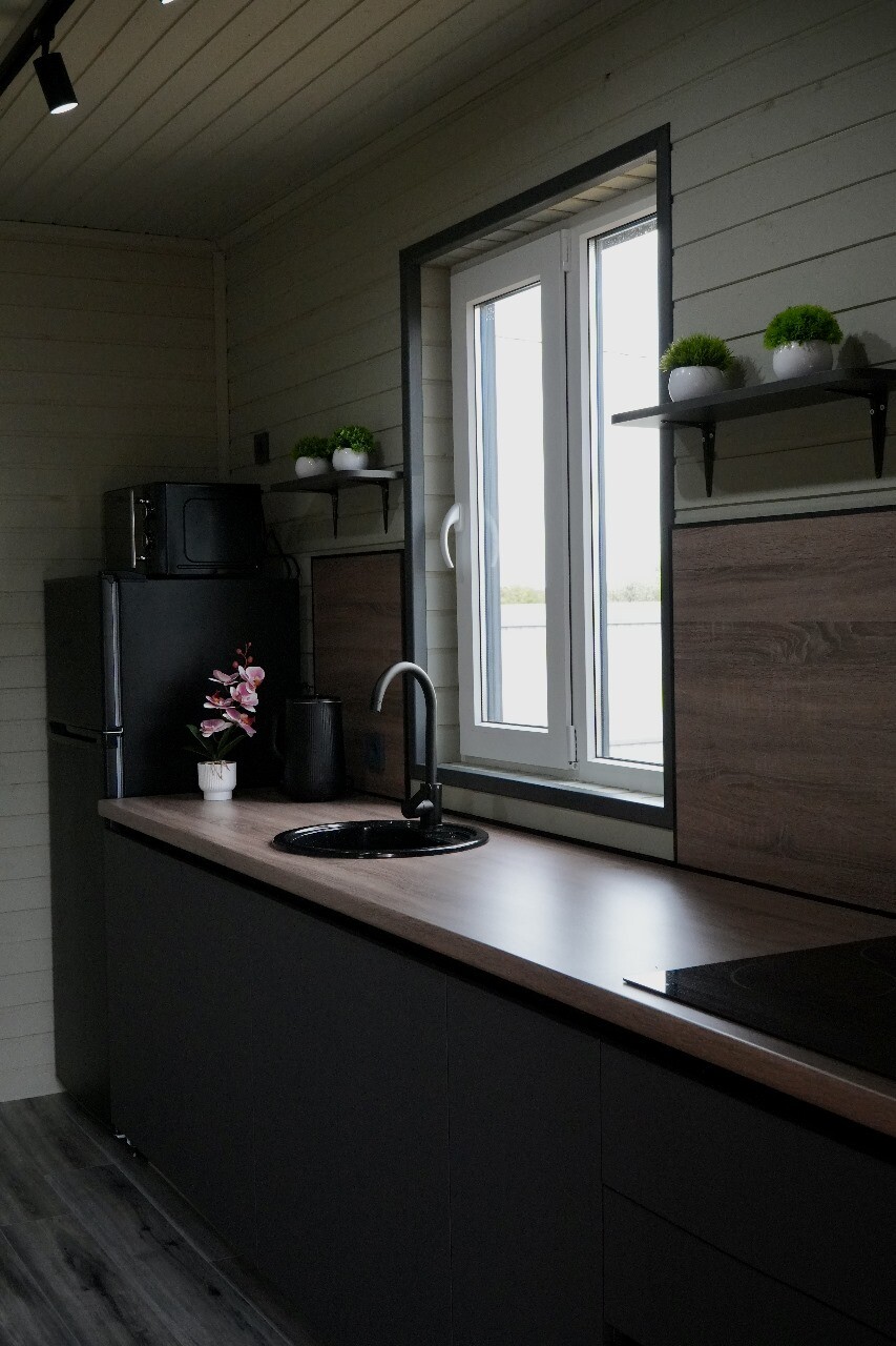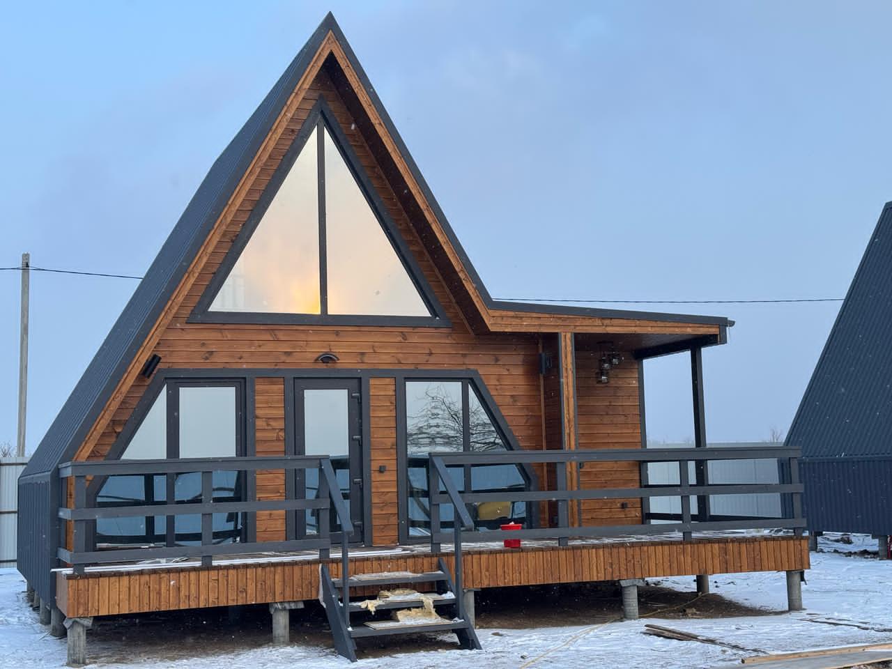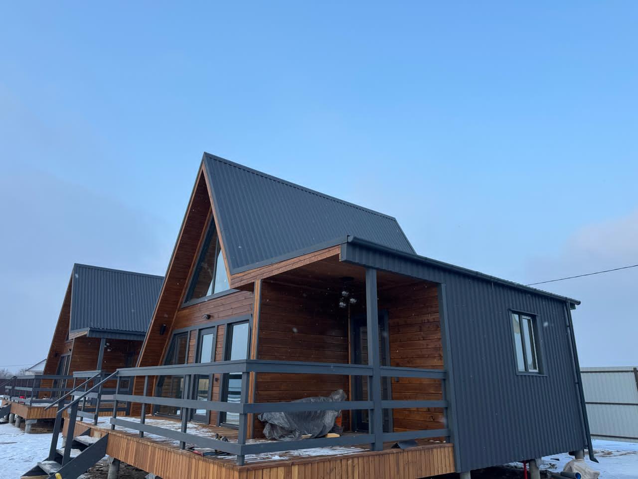 -Окна: ПВХ Elex, однокамерные, профиль 60, ламинация с одной стороны.Окна при установке утапливаются в зону каркаса и утепления.
