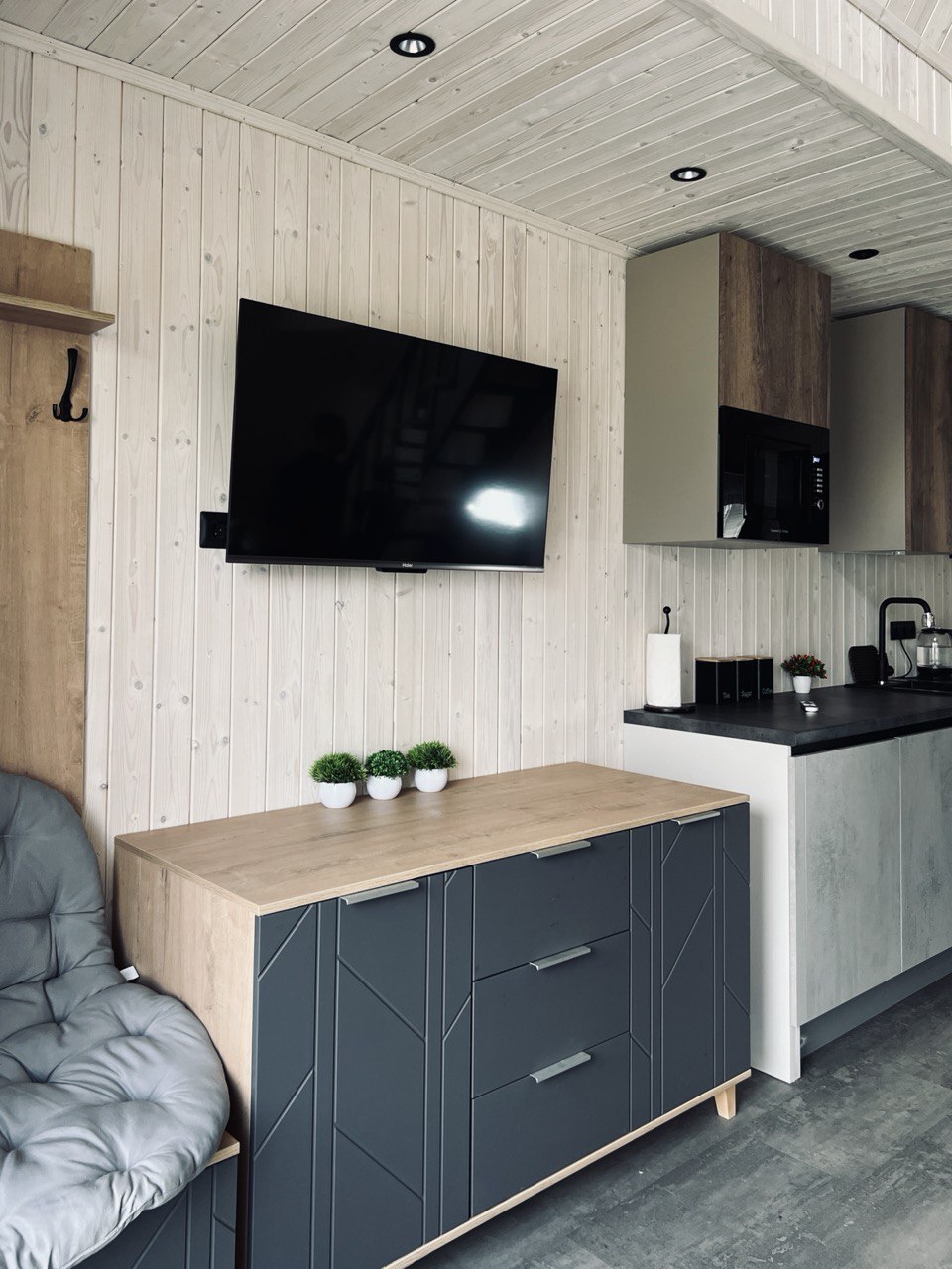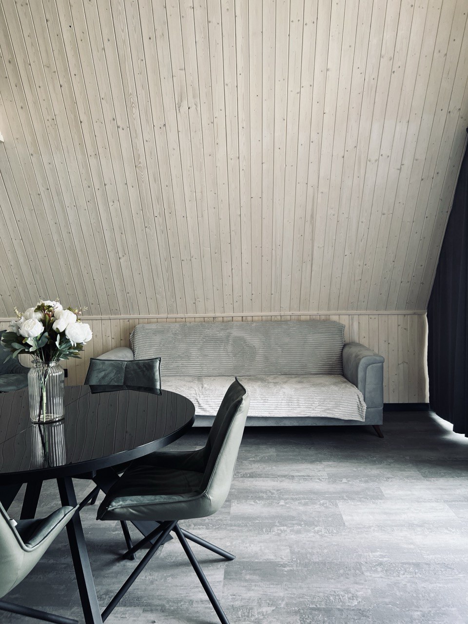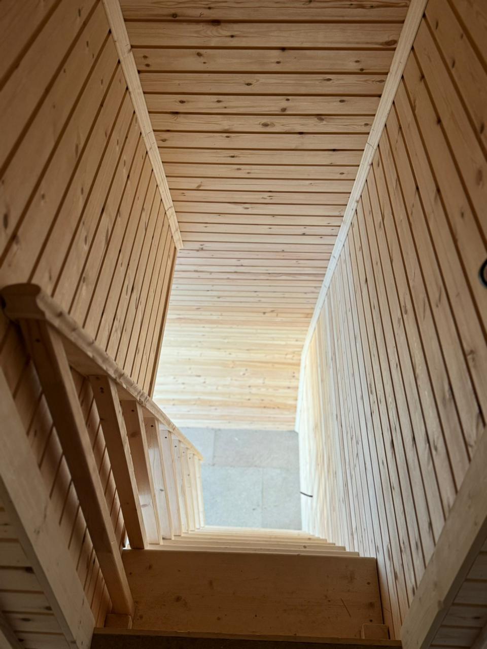 - Внутренняя отделка: Вагонка евро или вагонка штиль сорта АВ через контррейку. В углах устанавливается деревянный плинтус.