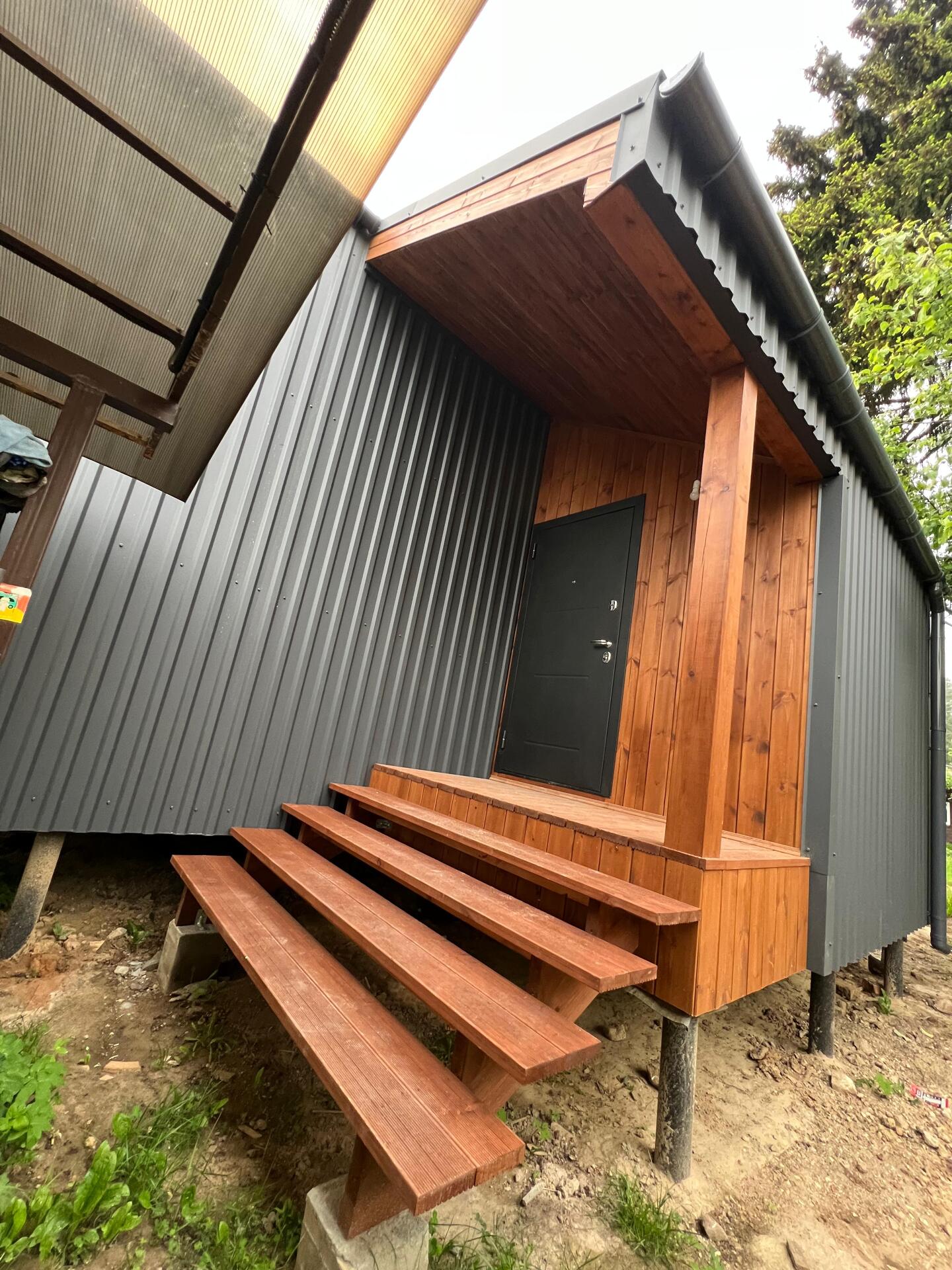 -На входе устанавливаются входные ступени террасы из остатков материалов.