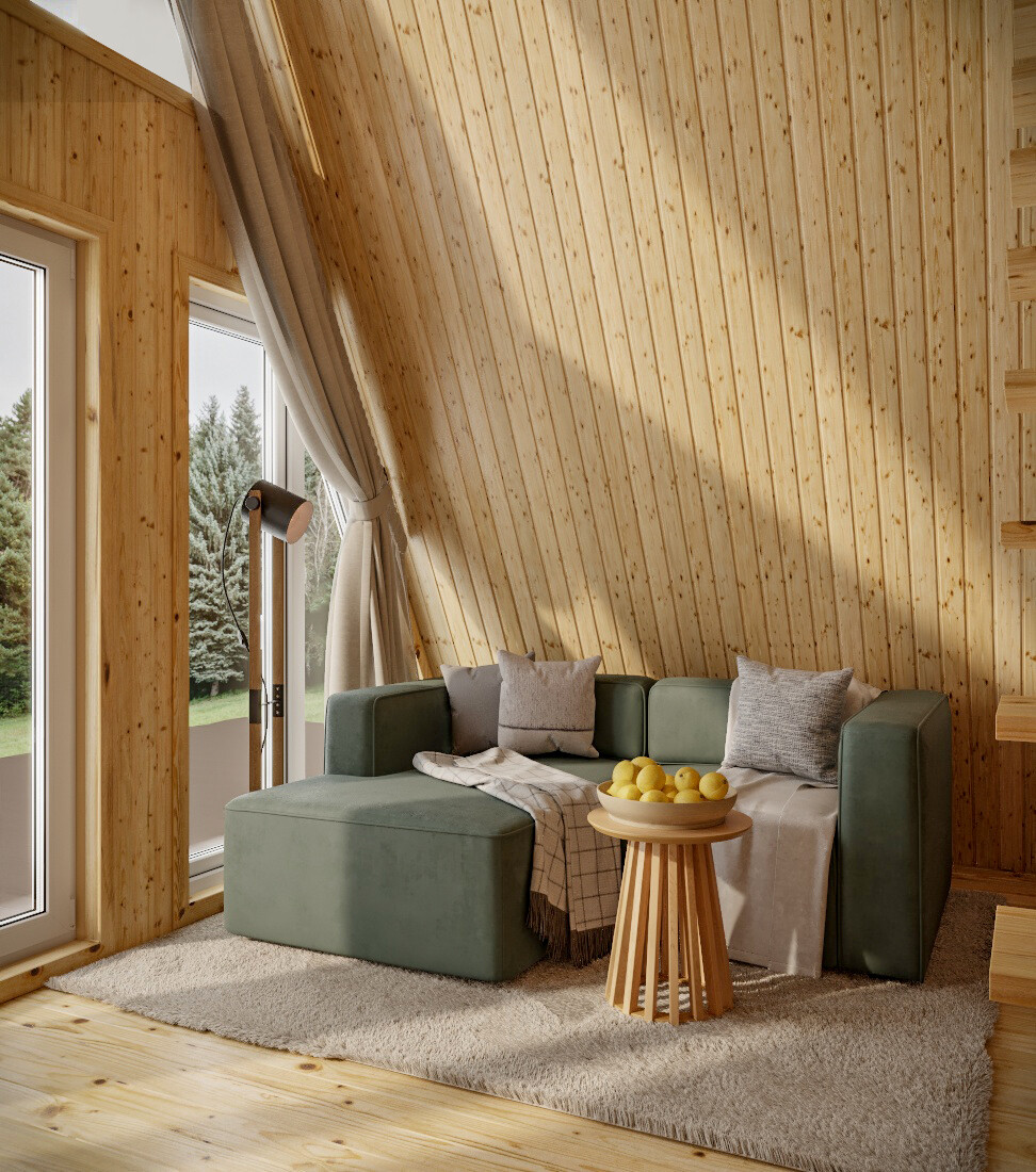 -Внутренняя отделка: Вагонка евро или вагонка штиль сорта АВ через контррейку. В углах устанавливается деревянный плинтус.
