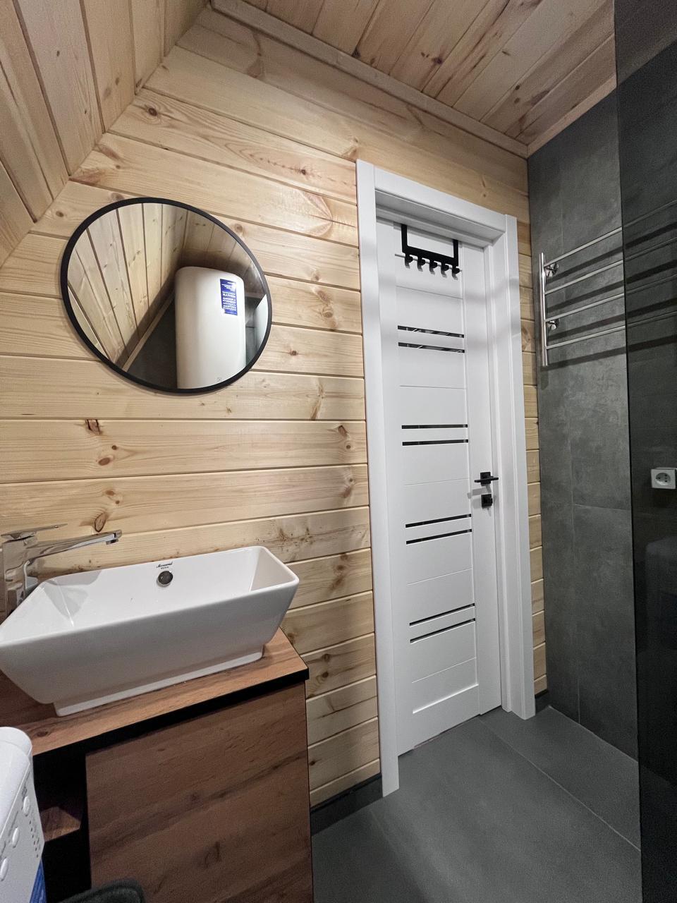 - Наличник 90мм хвойных пород. Откосы на окнах из вагонки или имитации бруса, отделываются окна и дверь внутри и снаружи.