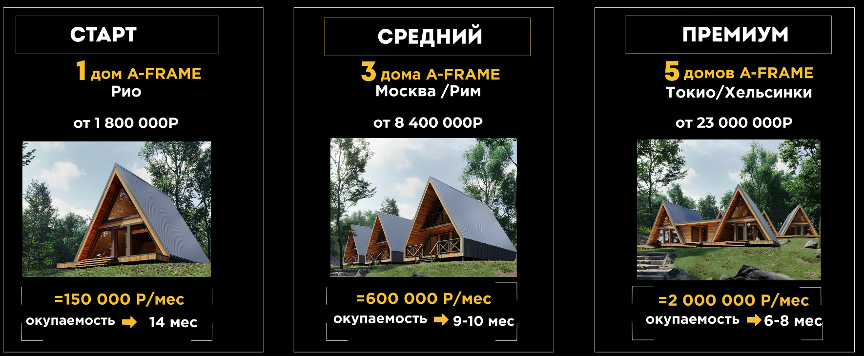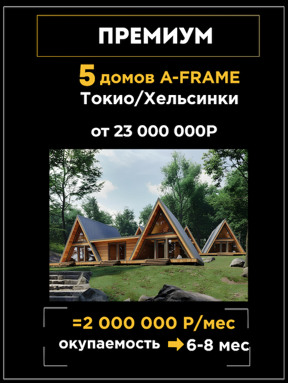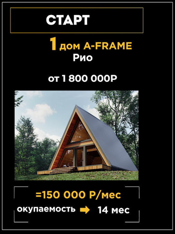A-frame и Барнхаусы с окупаемостью от 6 месяцев.